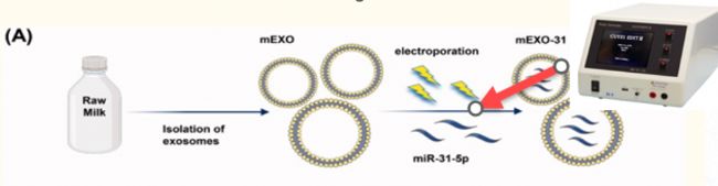圖1:分離乳源性外泌體(mEXO)和制備miR-31-5p負(fù)載外泌體(mEXO-31)