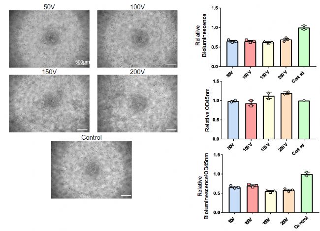 圖3:使用CUY21EDIT II確定 siRNA 轉(zhuǎn)染效率的最佳電壓為150v